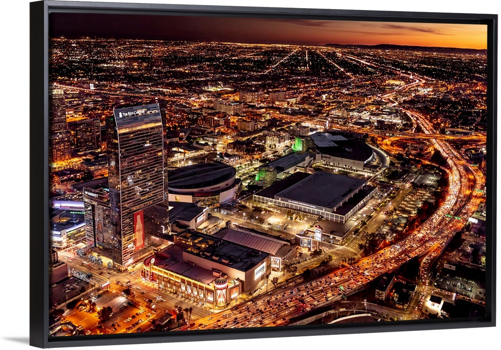 <p>Evening aerial view of a hotel and convention center in the city of Los Angeles, California, united states of America.</p>