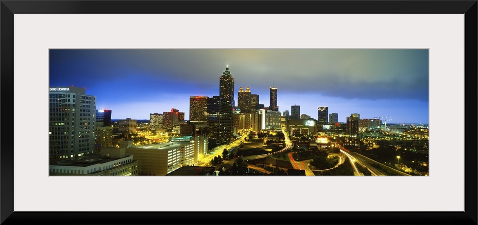 <p>Large horizontal photo on canvas of downtown Atlanta at night lit up.</p>
