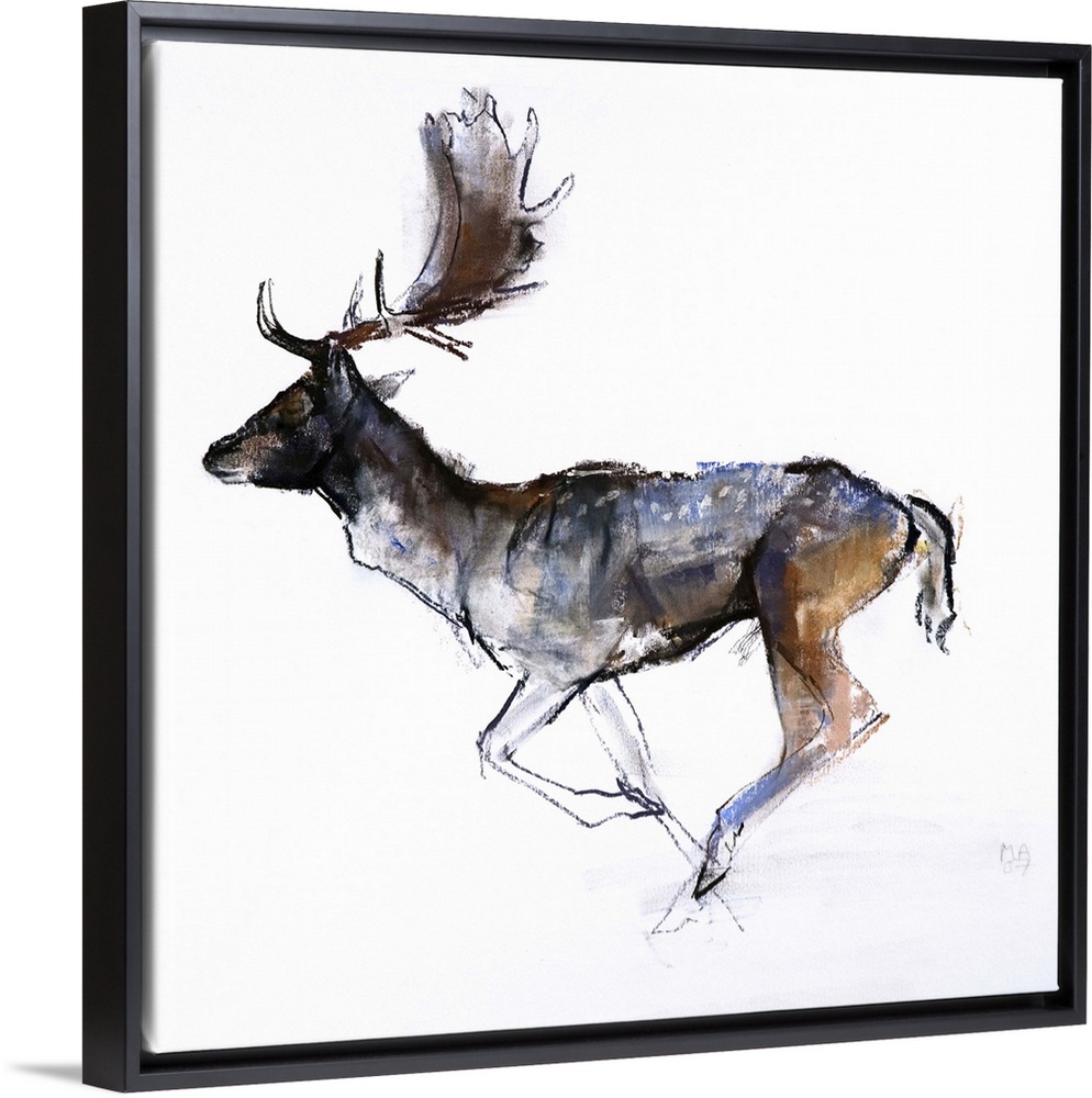 <p>Contemporary artwork of a fallow deer running against a white background.</p>