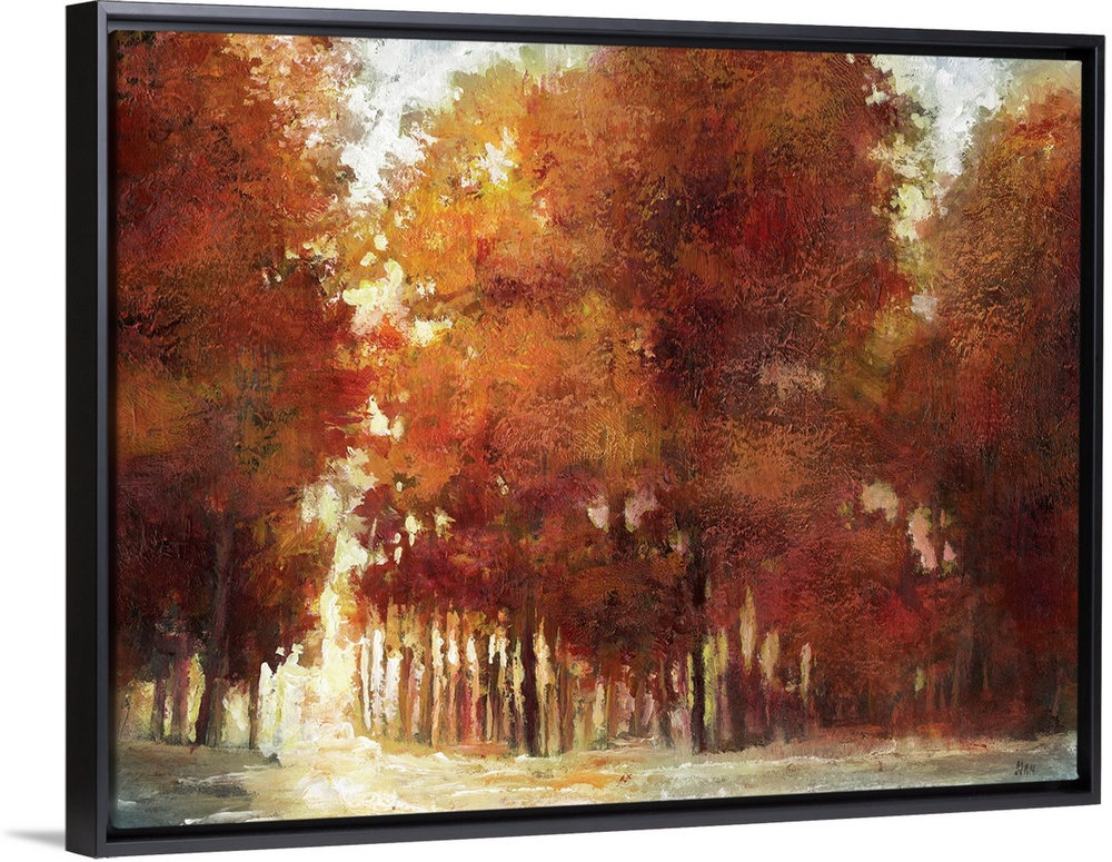 <p>Contemporary painting of a dense forest in fall colors.</p>