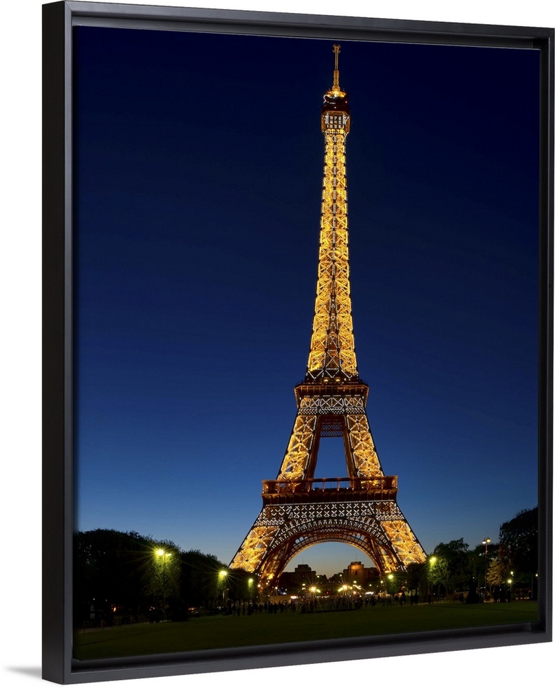 <p>A photograph of the Eiffel Tower seen at night.</p>