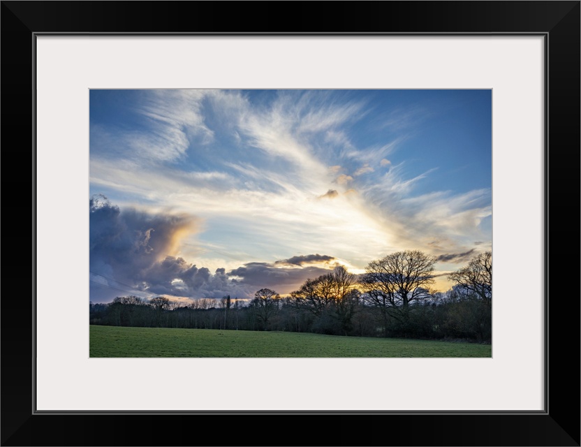 <p>Dramatic evening sky over the West Sussex landscape near Nutbourne in England.</p>