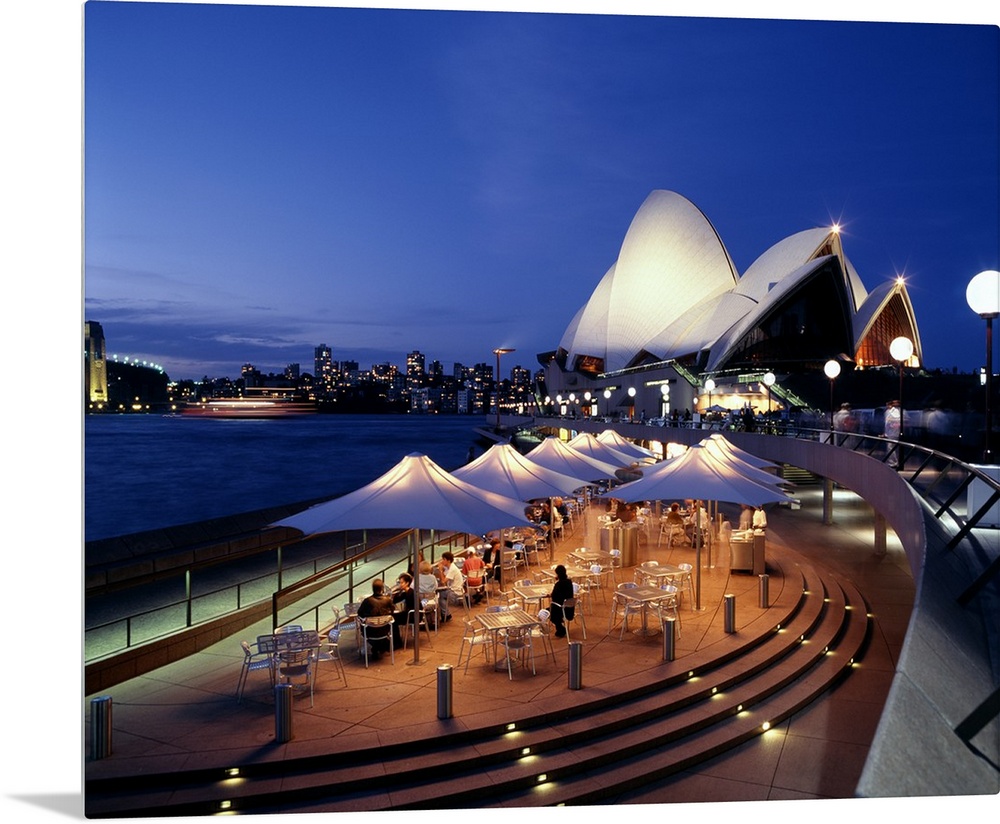 <p>A panorama of Sydney, Autralia's waterfront, featuring the Sydney Opera House and cafe.</p>