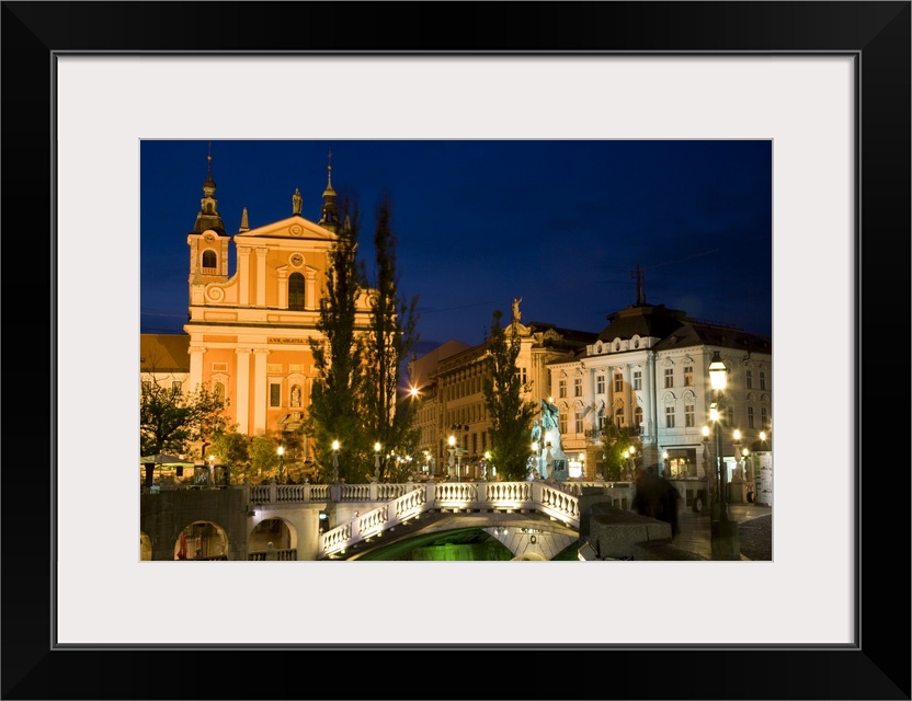 <p>Evening view of Franciscan Church, Presernov Trg Square and Triple Bidge, Ljubljana, Slovenia</p>