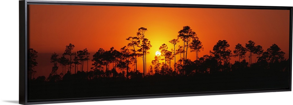 <p>Panoramic image of the silhouettes of trees at sunset at the Everglades National Park in Florida.</p>