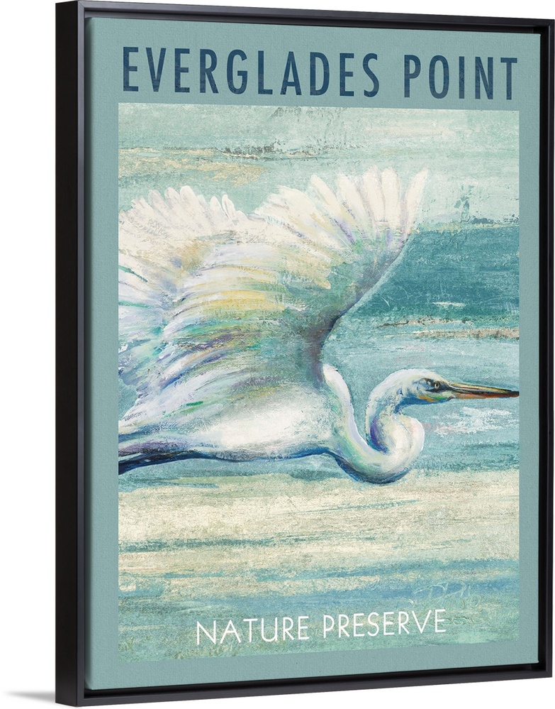 <p>Painting of a white egret in flight, promoting a Nature Preserve in the Florida Everglades.</p>