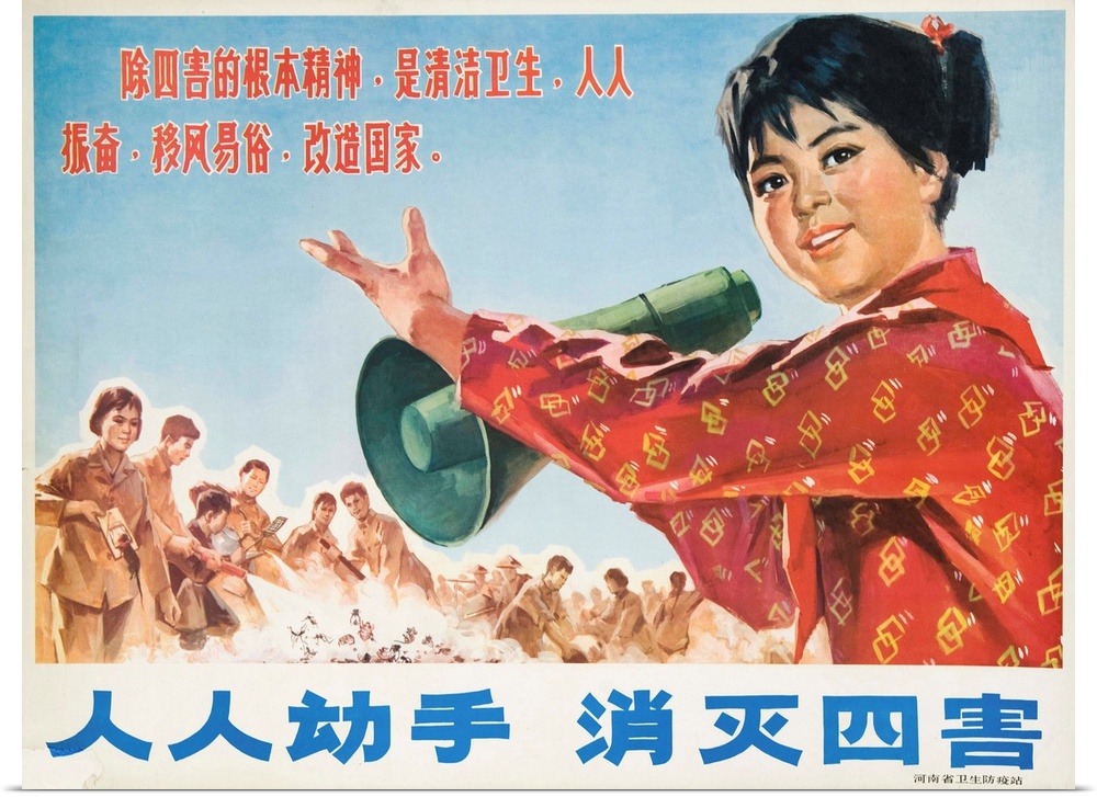 <p>Chinese Cultural Revolution Poster, The 4 Harms - Mosquito, Rat, Flies and Bedbugs</p>