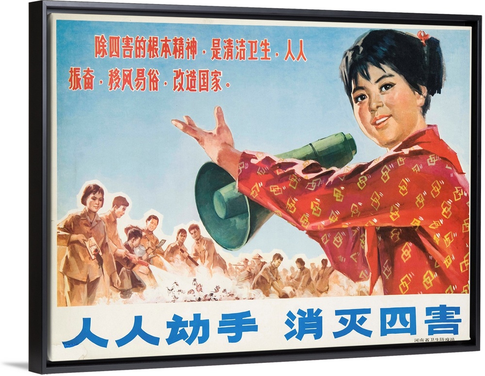 <p>Chinese Cultural Revolution Poster, The 4 Harms - Mosquito, Rat, Flies and Bedbugs</p>