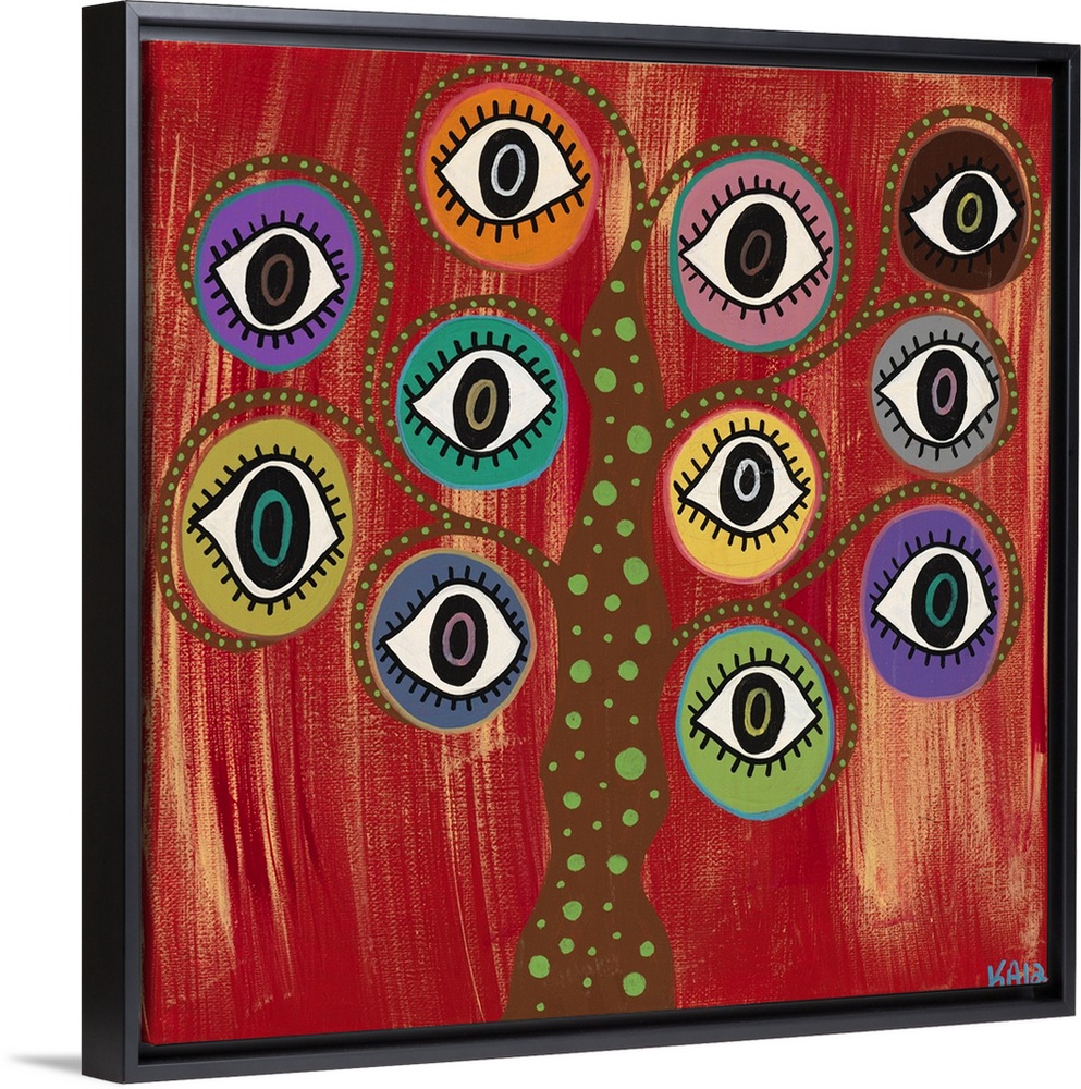 <p>Contemporary painting of a tree with wide eyed leaves.</p>