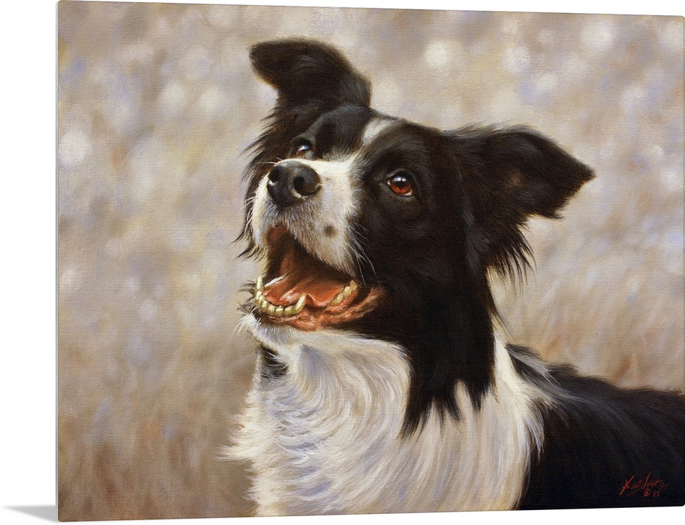 <p>Contemporary painting of a black and white shepherd dog.</p>