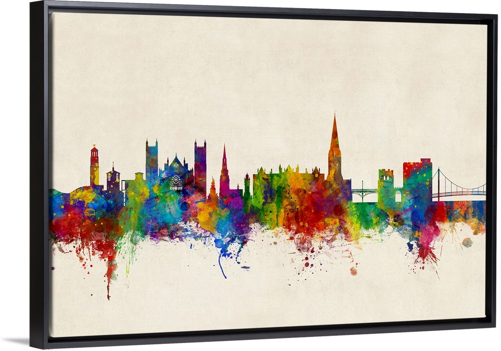 <p>Watercolor art print of the skyline of Exeter, Devon, England, United Kingdom</p>