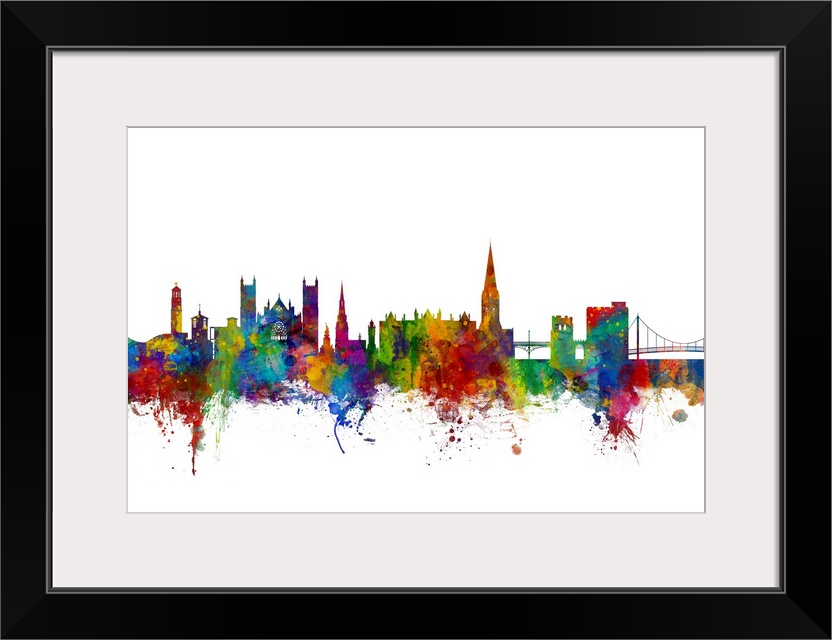 <p>Watercolor art print of the skyline of Exeter, England, United Kingdom</p>