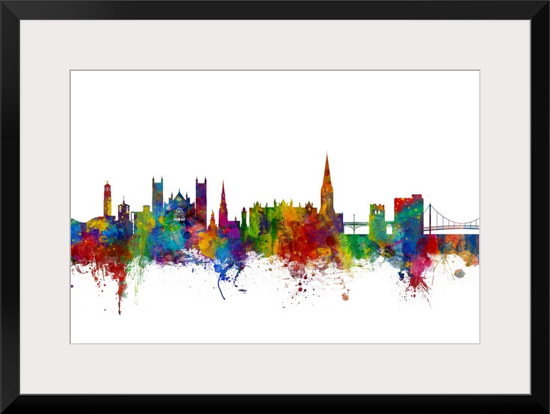 <p>Watercolor art print of the skyline of Exeter, England, United Kingdom</p>