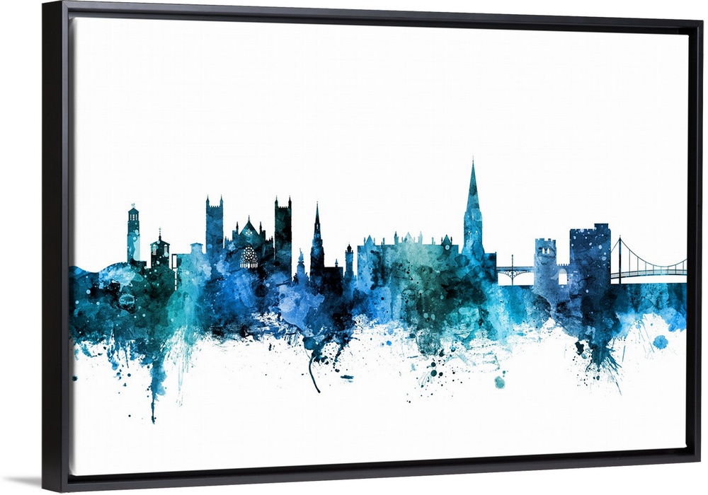 <p>Watercolor art print of the skyline of Exeter, England, United Kingdom.</p>