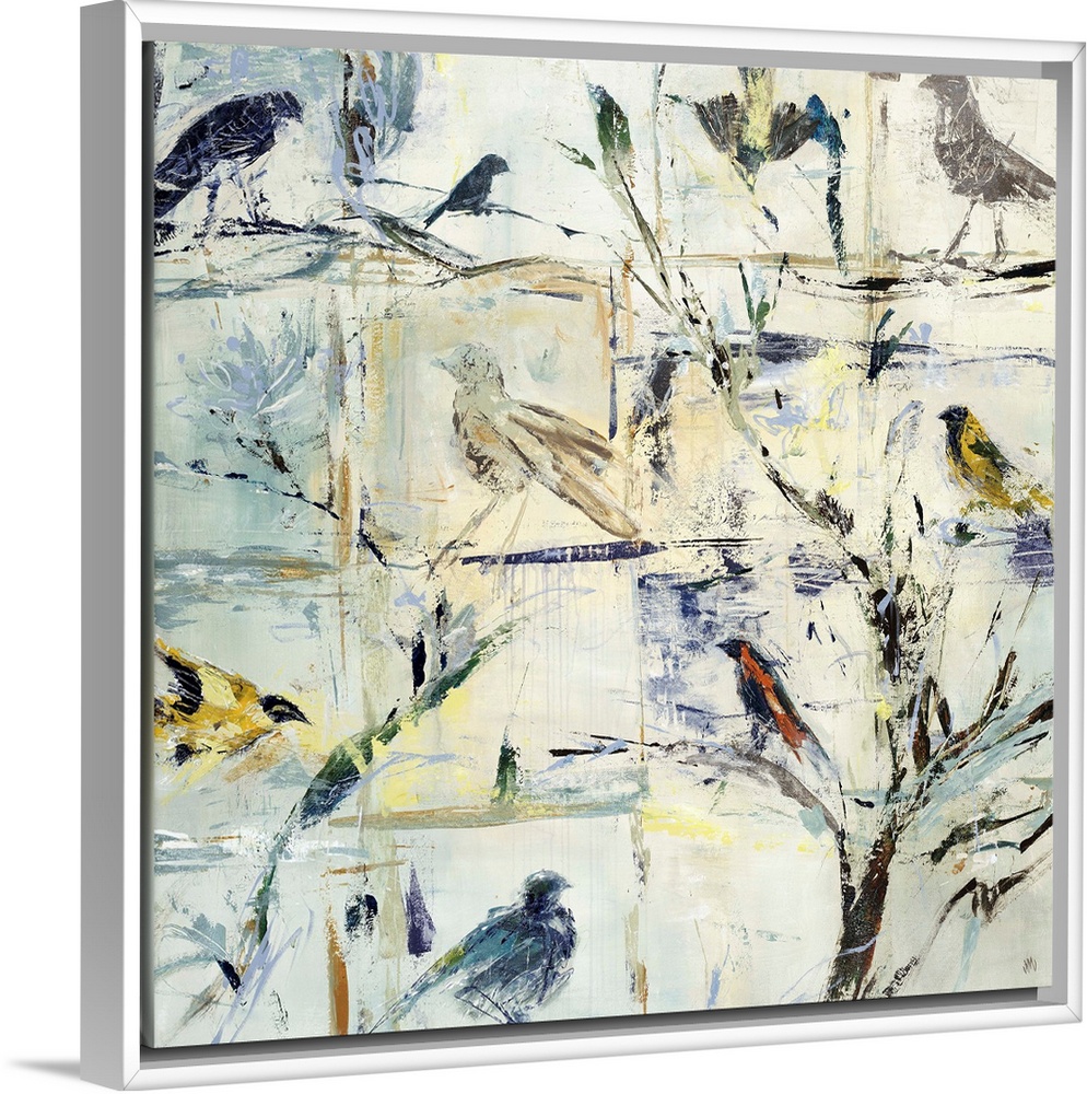 <p>Contemporary painting of various abstracted birds against a cool cream background.</p>