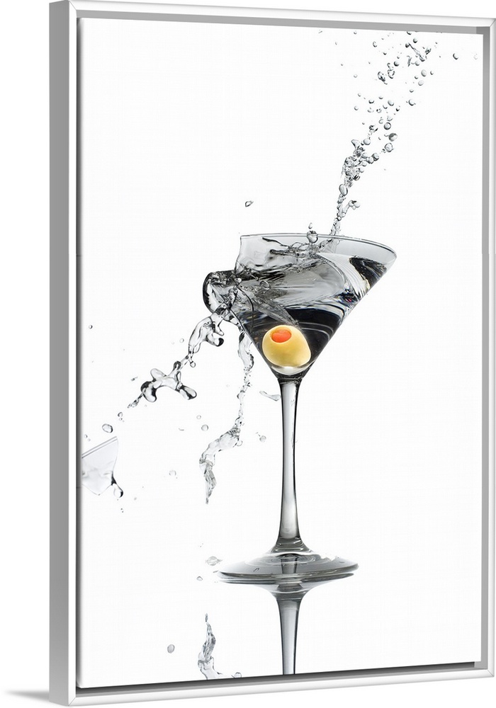 <p>A shattering martini glass on a white background spraying liquid outward.</p>