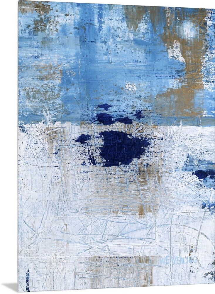 <p>A contemporary abstract painting using distressed blue and gray tones.</p>