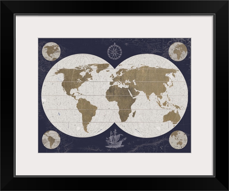 <p>Artwork of an antique old world explorer's map, against a dark blue background.</p>