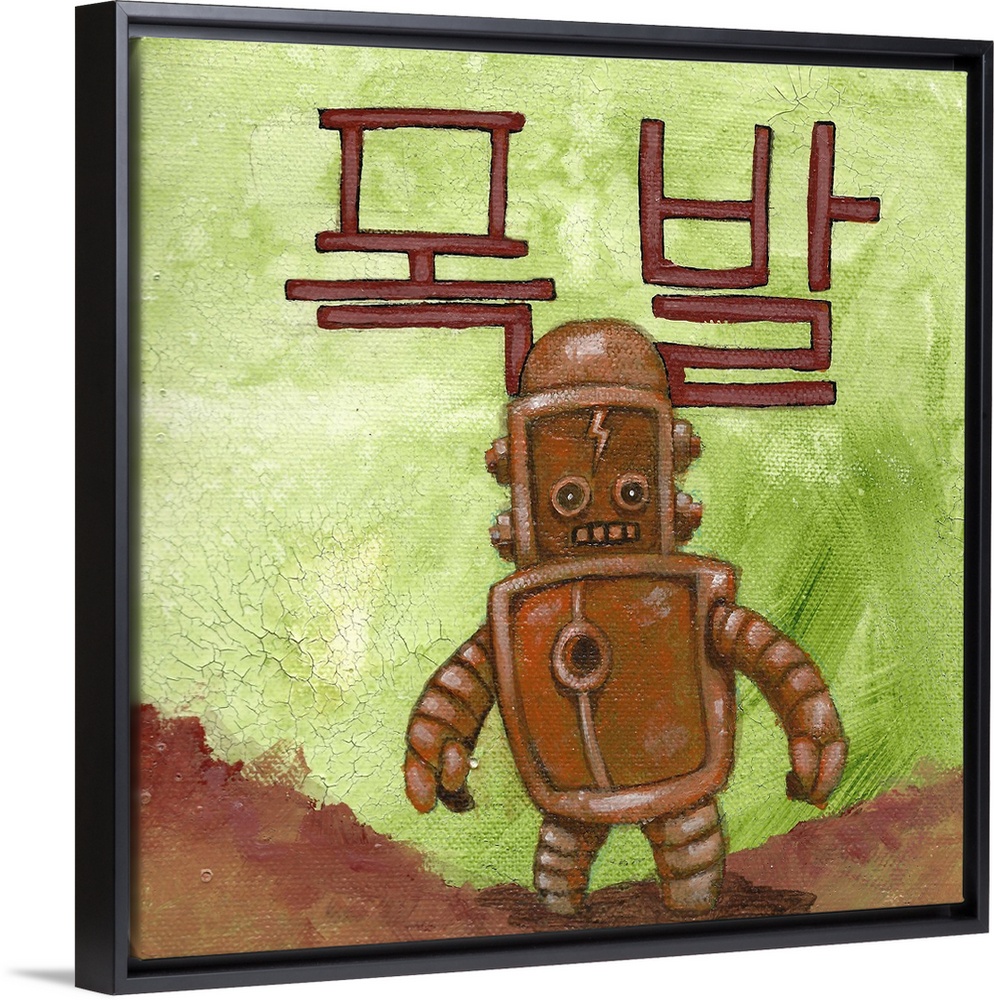 <p>Illustration of a small copper robot with a grin on its face.</p>