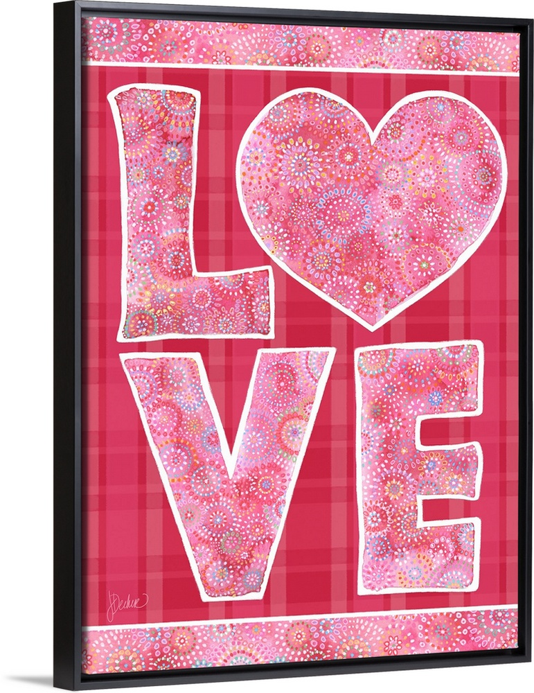<p>Love design in pink on plaid. Decorative lettering and patterns.</p>