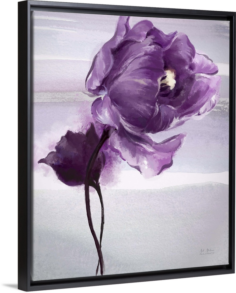 <p>Contemporary home decor art of purple flower against a light gray background.</p>