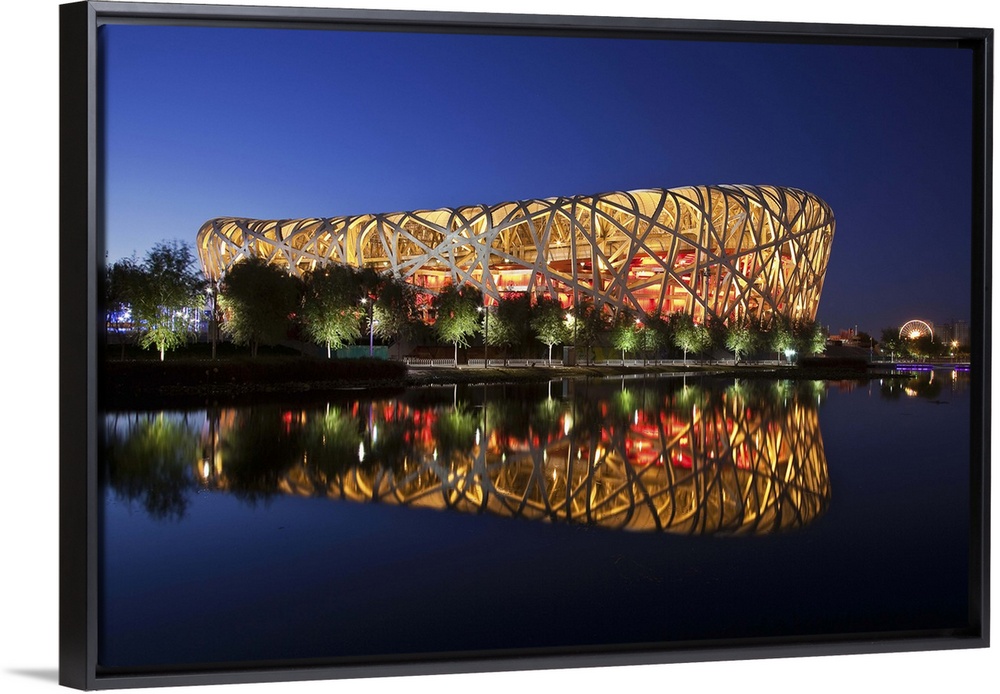 <p>Exterior of the Olympic Stadium, Datun, Beijing, China by night.</p>