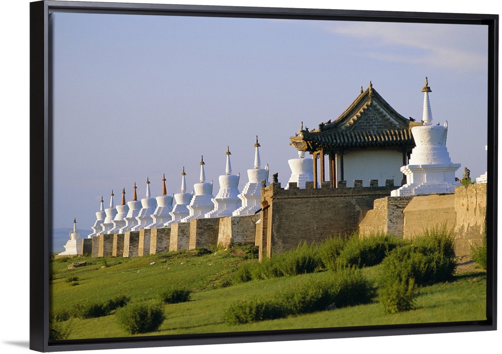 <p>Exterior wall with 108 stupas at Erdene Zuu Monastery, Kharkhorin, Karakorum, Ovorkhangai, Mongolia</p>