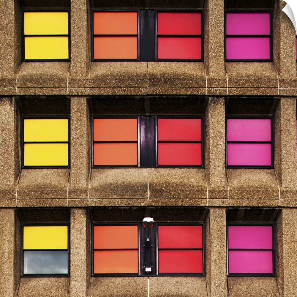 <p>Colourful windows in a modern building</p>