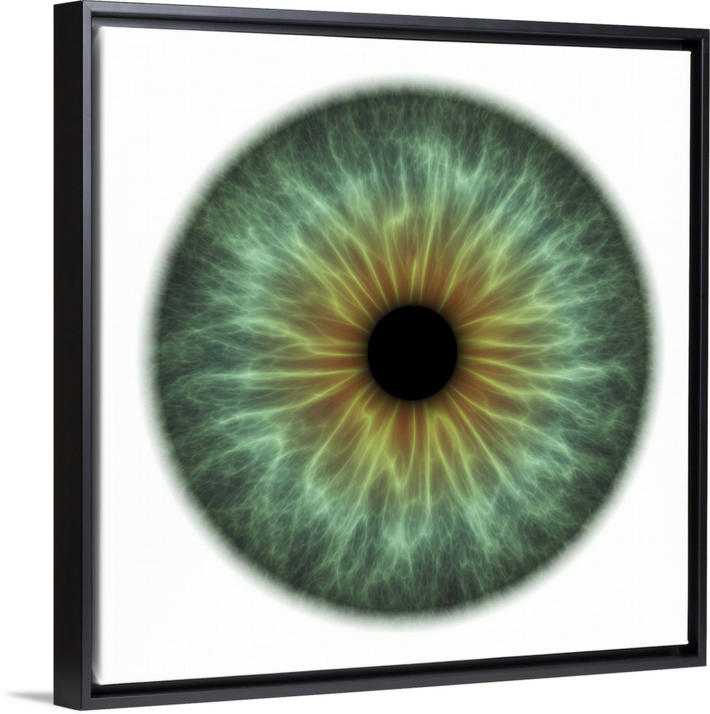 <p>Eye. Computer artwork of a close-up of a contracted iris and pupil of an eye. The iris, a coloured muscular ring, regulates the amount of light that enters the eye through the pupil (black).</p>
