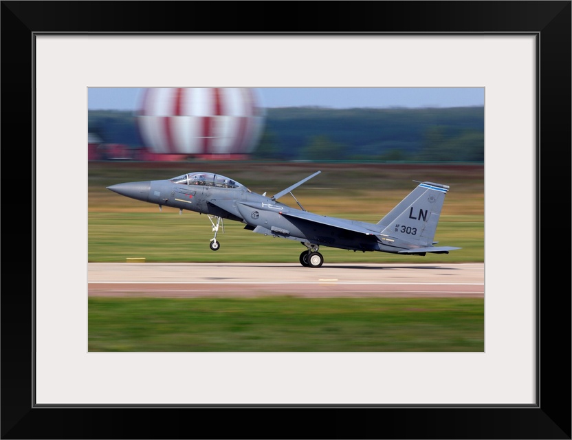 <p>F-15E jet fighter of U.S. Air Force landing, Zhukovsky, Russia.</p>