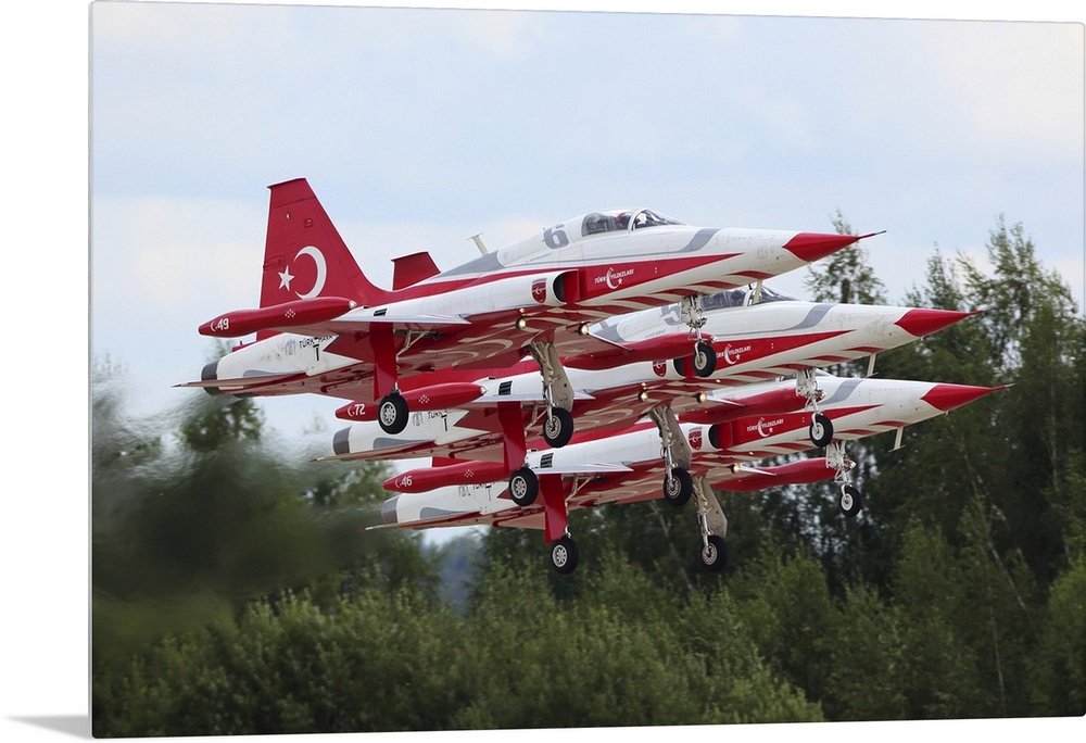 <p>F-5 Freedom Fighter/Tiger II jet fighters of the Turkish Stars taking off at ARMY-2017 military forum, Kubinka, Moscow Region, Russia.</p>