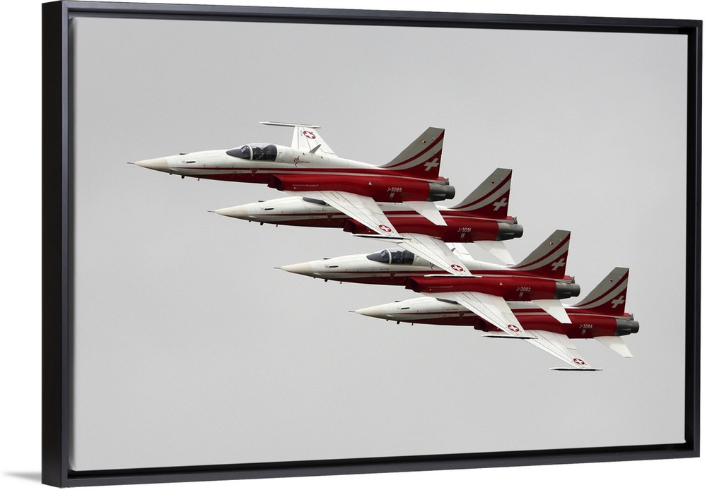 <p>F-5E Tiger II jet fighters of Patrouille Suisse during RIAT-2017 airshow, Fairford, England, United Kingdom.</p>