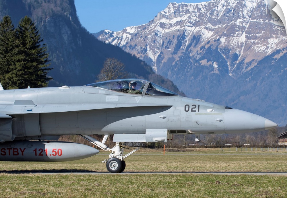 <p>F/A-18 from the Swiss Air Force taxiing at Meiringen Air Base, Switzerland.</p>