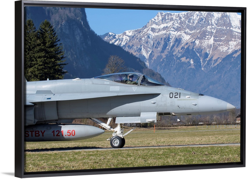 <p>F/A-18 from the Swiss Air Force taxiing at Meiringen Air Base, Switzerland.</p>