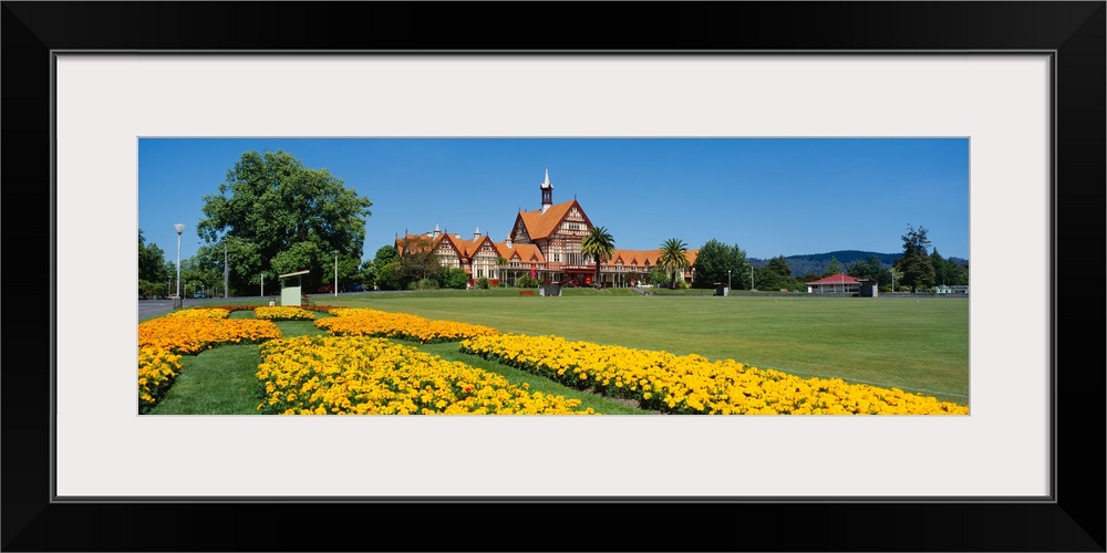 <p>Facade of a bathhouse, Tudor Tower Bath House, Rotorua, New Zealand</p>