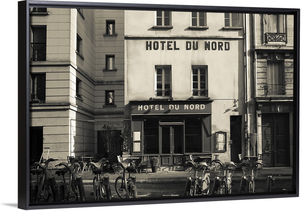 <p>Facade of a hotel, Hotel Du Nord, Canal Saint-Martin, Paris, Ile-de-France, France</p>