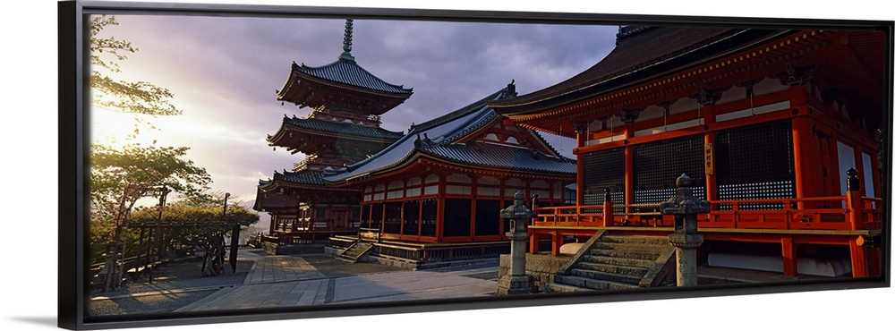 <p>Panoramic photograph on a giant canvas of the Kiyomizu-Dera Temple, shadowed as the sun sets in the sky, in the Kyoto Prefecture, Kinki Region, Honshu, Japan.</p>