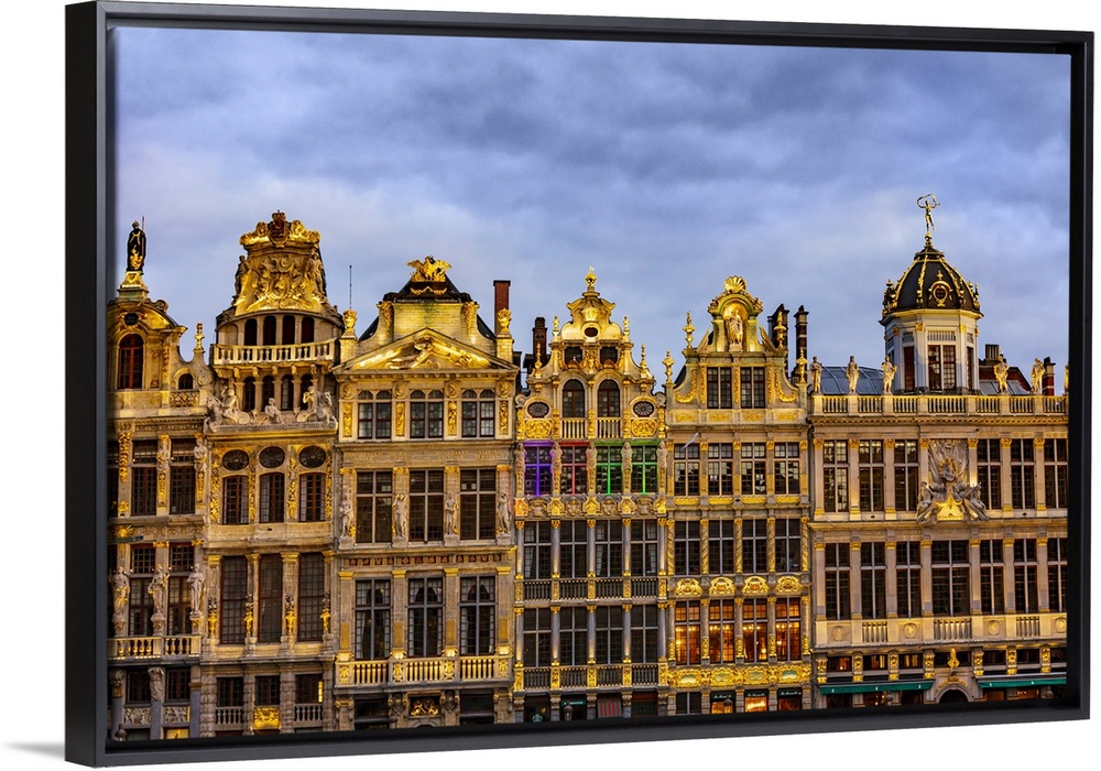 <p>Facade of the typical houses in Brussels Grand Place by night, Belgium</p>