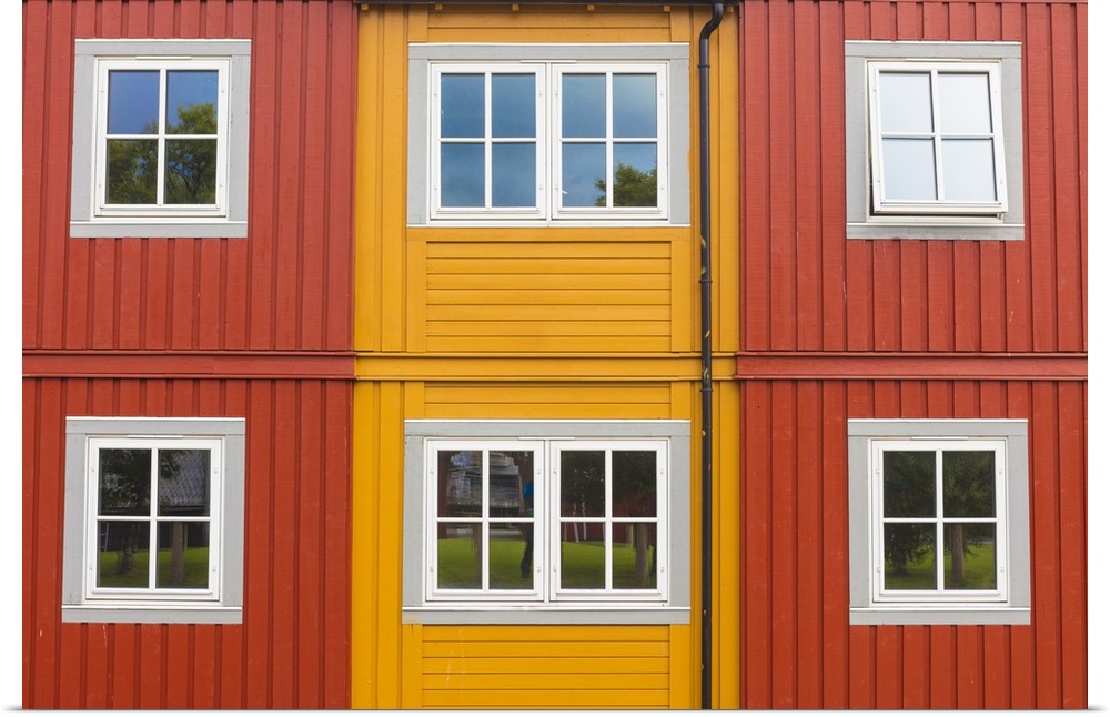 <p>Details of facades and windows of typical wooden houses of fishermen in Svolvaer, Vagan, Lofoten Islands, Norway, Scandinavia, Europe</p>