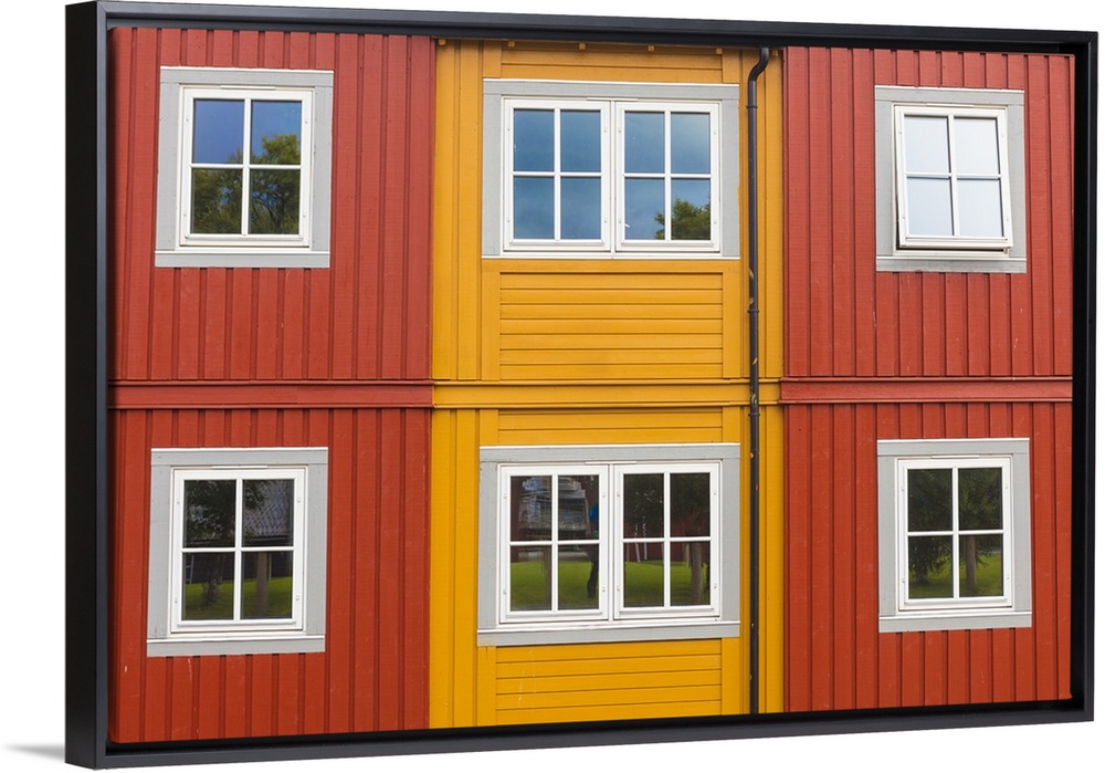 <p>Details of facades and windows of typical wooden houses of fishermen in Svolvaer, Vagan, Lofoten Islands, Norway, Scandinavia, Europe</p>