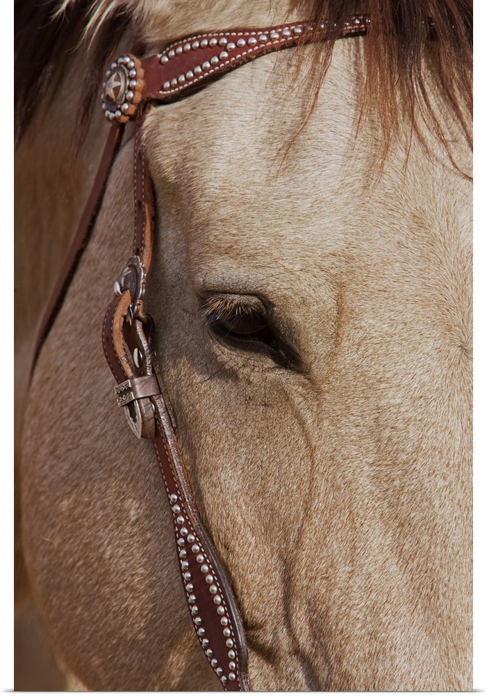 <p>Face of a Quarter Horse in the Big Horn Mountain of Shell, Wyoming.</p>
