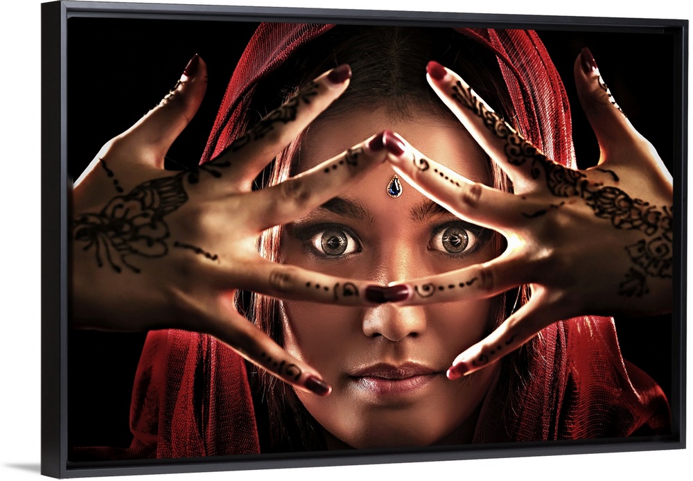 <p>An Indian woman with her hands in a dancing position in front of her face.</p>
