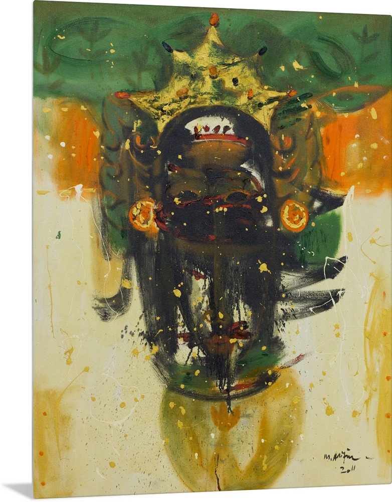 <p>In this painting I portray the god who according to Balinese beliefs brings prosperity to every peaceful and happy soul, Mohammad Arifin says of this painting. Working with oils, he depicts his own version of what the deity could look like. In Bali, people believe the god of prosperity heals those suffering from illness. Some may pray to him up to three times a day. Titled Wajah Dewa Kemakmuran in Bhasa.</p>