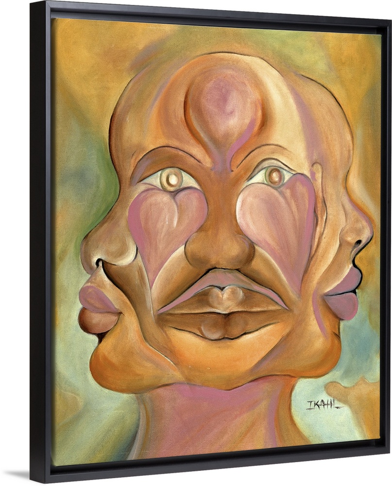 <p>Surreal contemporary artwork of a group of human faces melded together, symbolizing unity and intimacy between all humankind.</p>