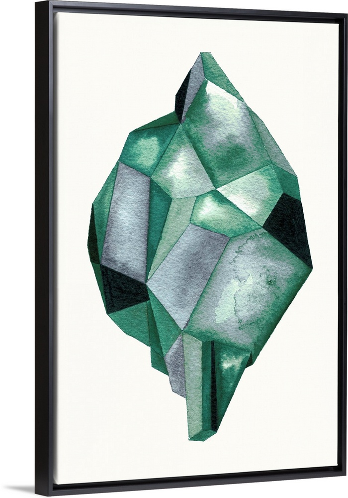 <p>A contemporary abstract watercolor painting of an emerald colored crystal-like shape.</p>