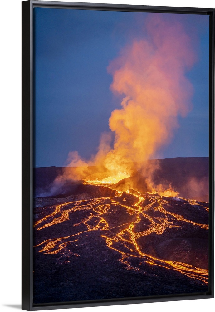 <p>Fagradalsfjall volcano eruption at twilight, Geldingadalir, Reykjanes Peninsula, Iceland.</p>