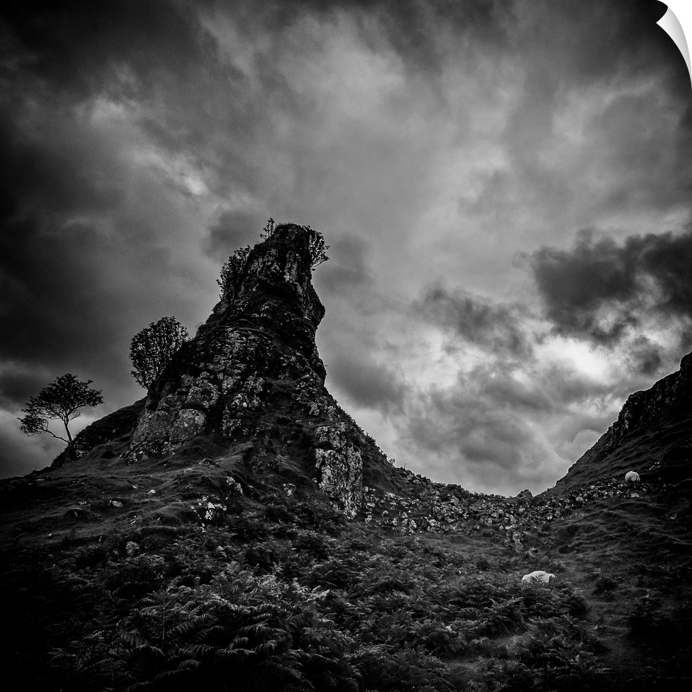 <p>Tree-lined rock formations on the Isle of Skye</p>
