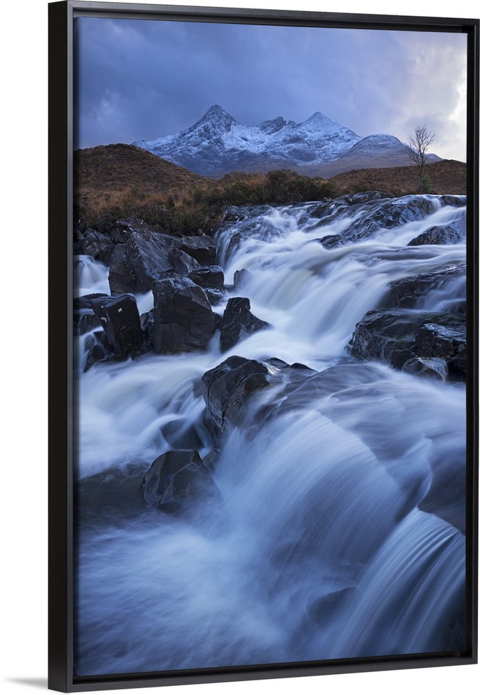 <p>Waterfall on the River Sligachan with Sgurr nan Gillean mountain in the background, Isle of Skye, Scotland. Winter (November)</p>
