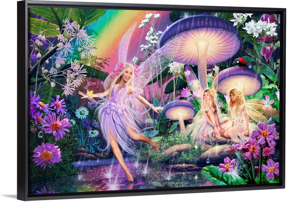 Art Fantasy Fairies Florals Mushrooms Graphic Art Purple Wall Art Steve Read