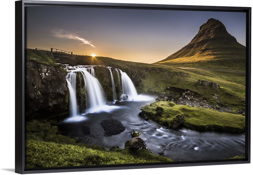 <p>Waterfall and river near Kirkjufell mountain, Iceland, at sunset.</p>